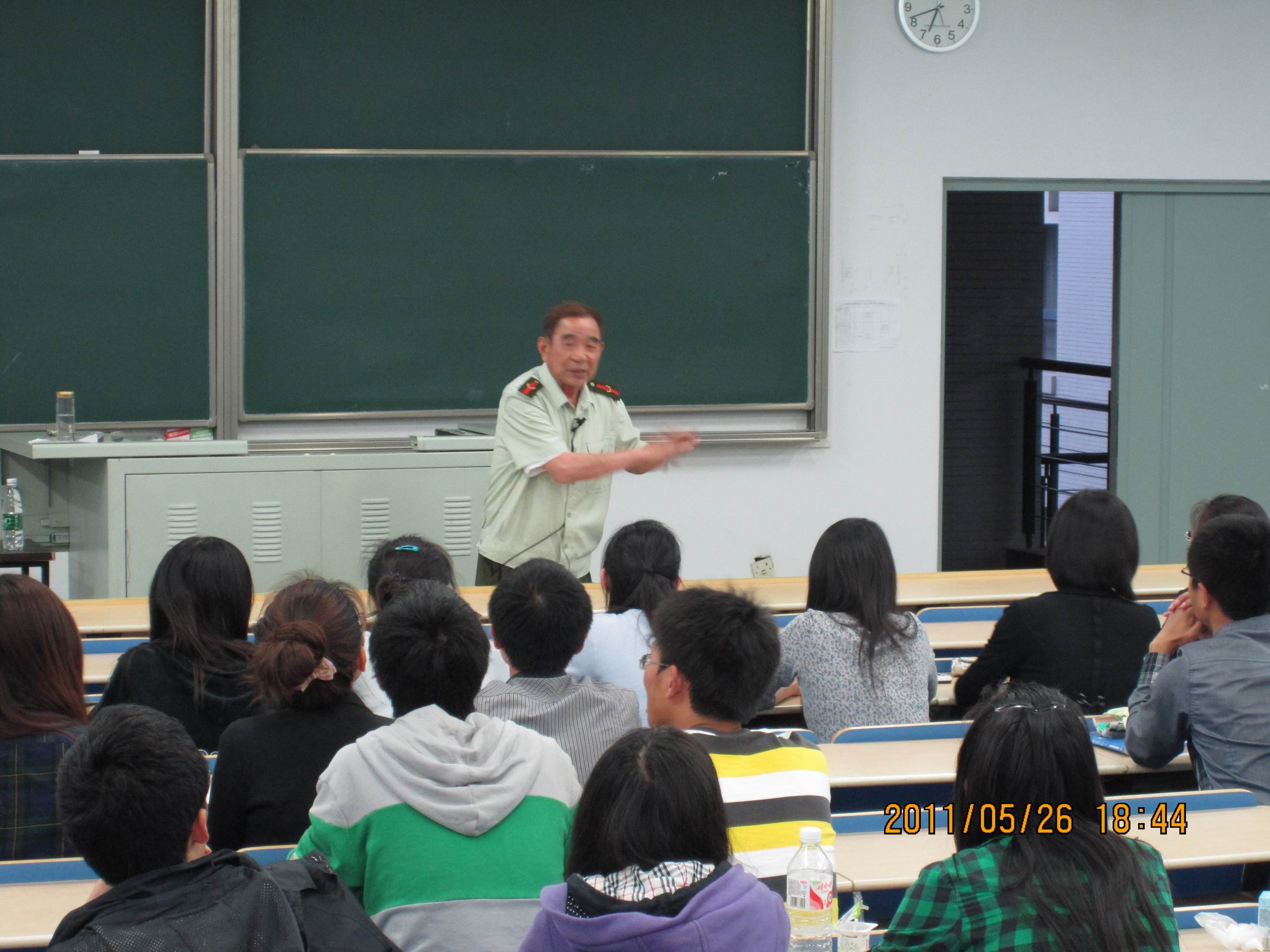 讲座中,董本植教授以其亲身经历,向我们广大同学讲述了50年代的抗美援朝战争的始末,60年代中国为打破国际势力的封锁,研制并成功引爆第一颗原子弹,以及当前中美两大国在国际军事领域内的博弈。激情而又生动的向在座学子讲述了建党九十年来我们国家的综合实力不断增强,以及新的时代所赋予我们大学生的新的使命。