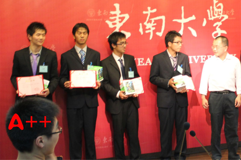 在前不久刚刚落幕的“沙场点兵”校园营销大赛中,由新葡的京官网王璨、赵禹豪、杨建超、郭晓东四位2010级本科生组成的A++创意团队逆流而上,不畏艰难,用3天时间完成了一周的校园营销大赛,逆转了局势,并以营销总额第三的成绩跻身决赛,决赛场上无论是精炼的营销方案PPT解说,还是斗智斗勇的现场营销比拼,A++团队突出的个人能力和强大的团队凝聚力赢得了评委和观众的一致认可,最终,团队以决赛总分第一,现场支持率最高,营销总成绩第二的佳绩获得亚军。四位选手的精彩表现给在场的评委,观众留下了深刻的印象。图为参赛同学在比赛现场。