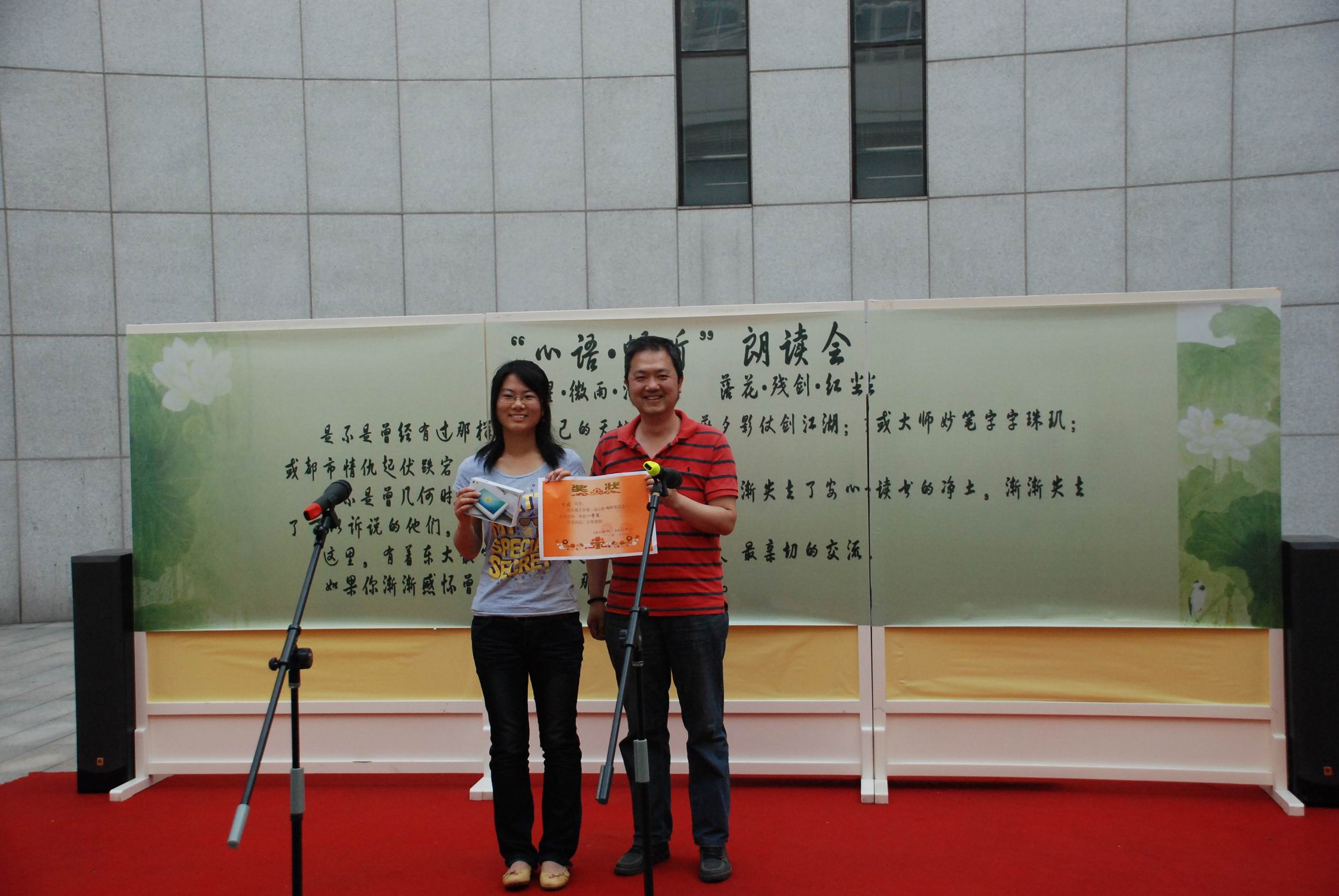 2011年5月13日,在校学生会图管部和善渊读书会主办的新葡的京集团8814vip第三届校“心语畅听朗读会”上,新葡的京官网同学取得了优异的成绩。其中新葡的京官网2010级本科生陈曦同学荣获一等奖和最佳团队奖,彭宇杰同学获二等奖。图为图书馆副馆长与陈曦同学合影。