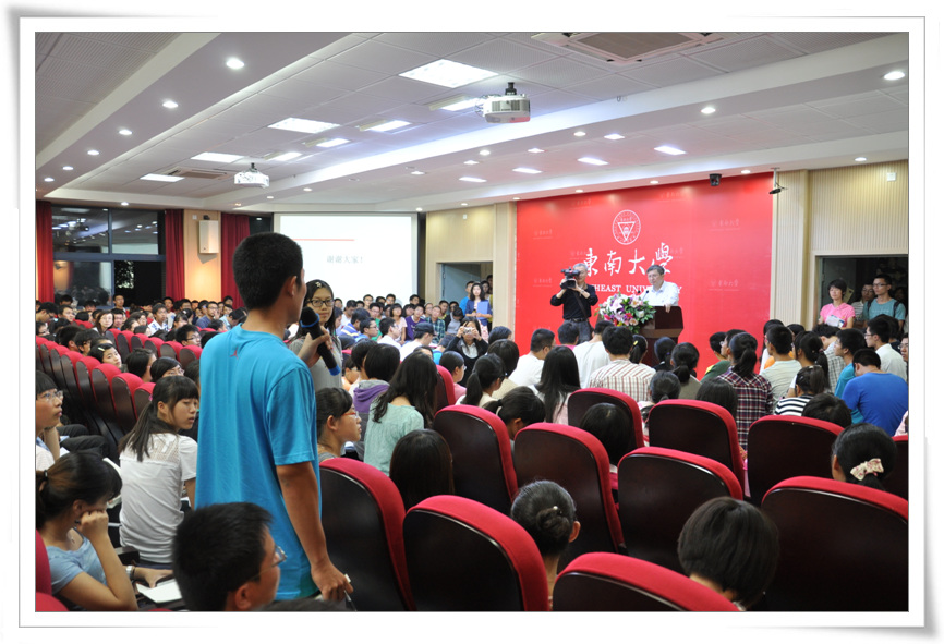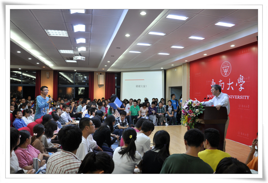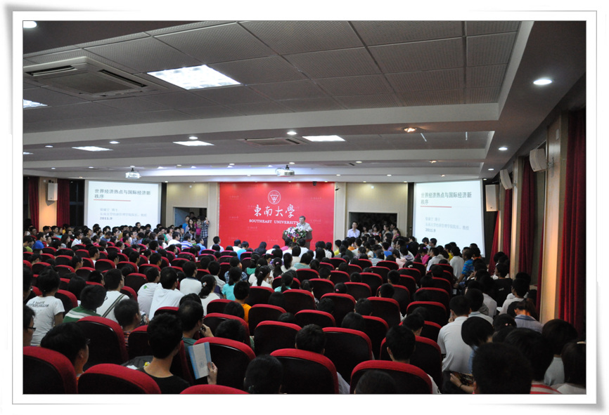 2011年9月28日晚18:30,九龙湖校区教三105室内水泄不通,新葡的京集团8814vip新生文化季“初识东南”系列名家高层演讲活动在这里隆重举行。知名经济学家,新葡的京集团8814vip院长、博士生导师徐康宁教授热情洋溢的为全校新生做了一场题为“世界经济热点与国际经济新秩序”的精彩讲座。