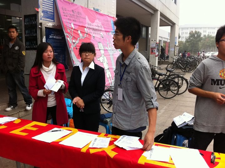 经过前期精心的策划和紧张的准备,第八届挑战CEO终于在11月15日徐徐拉开帷幕,三天的大赛宣传之后,同学们对比赛充满了好奇和兴趣,紧接着,梅园和桃园食堂的现场报名与网上报名,院系推荐同步展开,现场十分热闹,许多人慕名前来,想要一探究竟,工作人员耐心得为同学讲解比赛的详细流程,不少同学出于兴趣爱好踊跃报名,加入了大赛交流QQ群,开始了比赛前的热烈讨论。(学生会外联部 王璨)