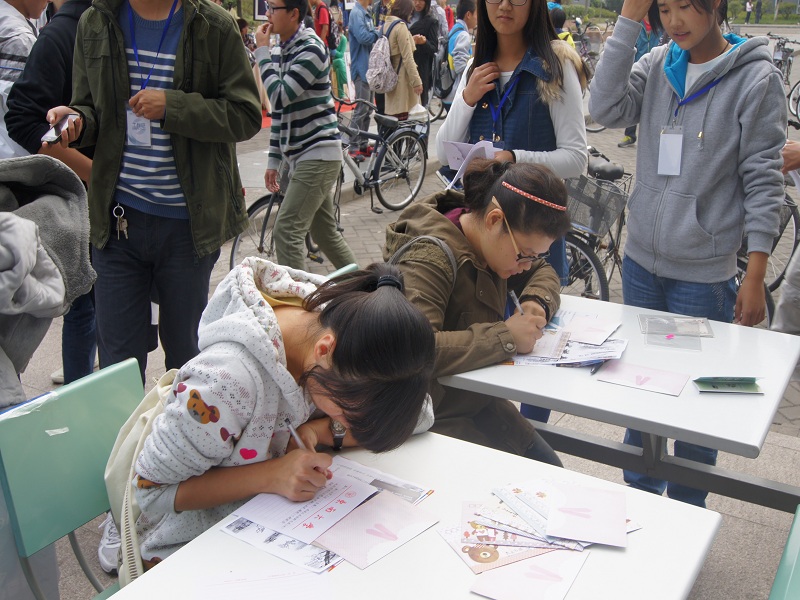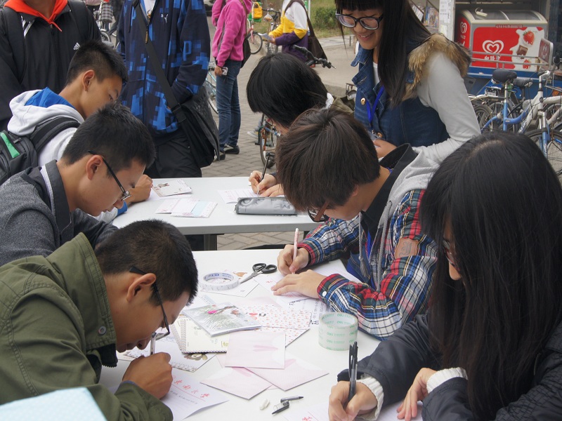 2012年10月25日中午,由新葡的京集团8814vip团委主办、学生会承办的“寄给未来的自己”活动在梅园食堂东侧广场拉开帷幕。新葡的京官网学生会主席沈梓岳、学生会副主席方皓、桑蕾及新葡的京集团8814vip各学院学生会领导出席了活动。