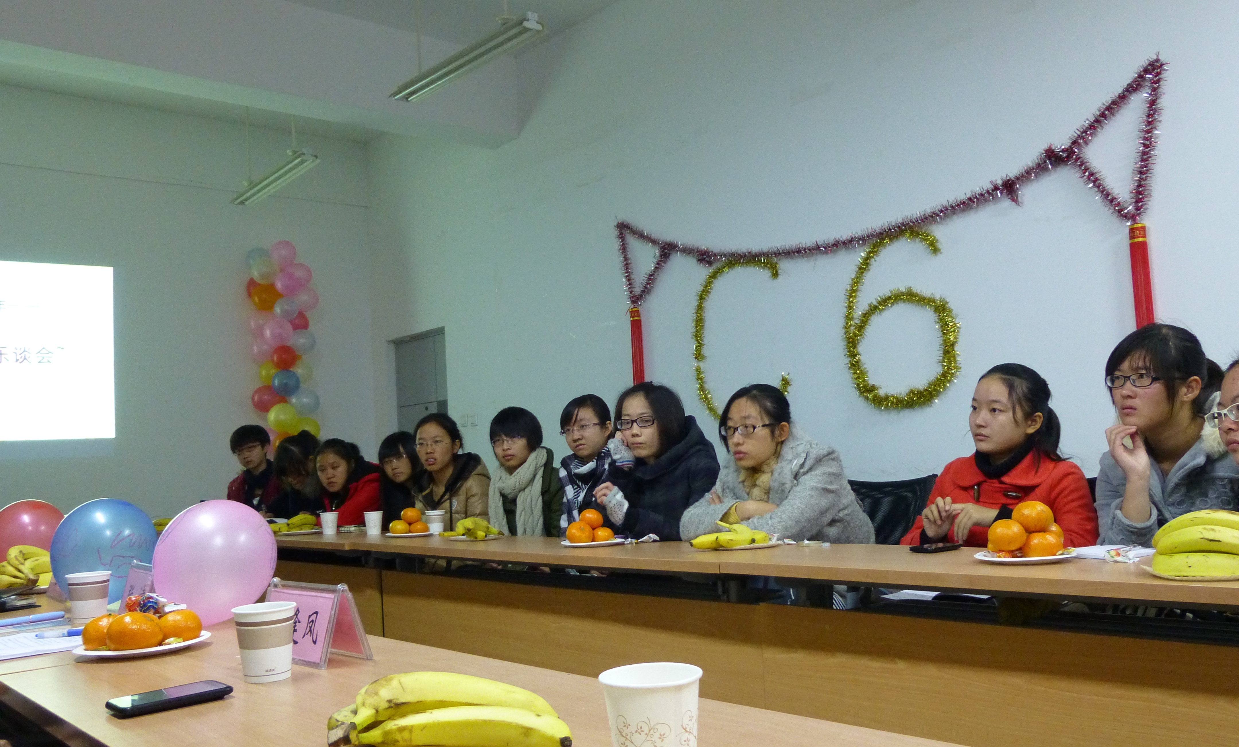 20121121日上午,在经管楼B102举行了一场小型的经验交流会,研究生辅导员兼班主任王逢凤老师,院研究生会主席张津、院学生会主席沈梓岳、大四学生代表胡筱祎三位学长学姐及14C126班全体同学、出席了此次座谈会。