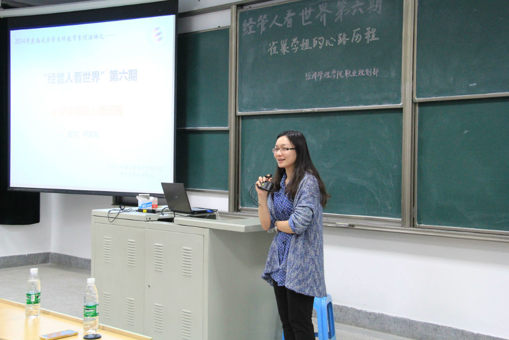 2014年4月10 日晚7:00,新葡的京集团8814vip学生会职业规划部举办的学姐经验交流讲座暨新葡的京集团8814vip“经管人看世