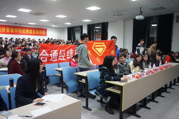 首先,由各年级参选团支部进行工作情况的汇报、特色团日活动的情况以及成果展示。各团支部从支部建设情况向评委展现各班委对支部的管理建设情况,展示出别具一格的管理方式和方法。14C131团支部响亮地打出恰同学少年,风华正茂口号,独树一帜;有的团支部组织了南京大屠杀考察活动,不忘历史,继往开来。14B156更是别出心裁地运用现场颁奖的形势,展示出支部的团结一致。14B154则模仿暴走大事件展开了B4大事件,生动有趣地展示了班级特色。为响应党中央的号召,各支部积极参加社会主义核心价值观,三走,志愿者等主题活动,并展示在活动和学习过程中所取得的各种优异成绩。