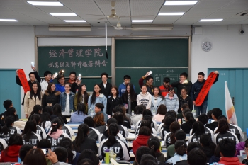 而14B162团支部则把班级形容为“经管先锋学习无限公司”,本着“以人为本,学习至上”的公司理念,展示了模拟人民代表大会、荧光夜跑等特色班级文化。充满创意与激情的展示赢得阵阵喝彩。
