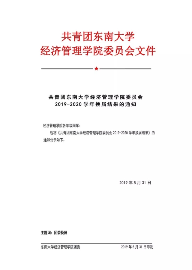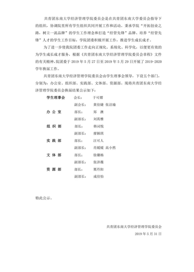 公示:共青团新葡的京集团8814vip委员会2019-2020学年换届结果通知