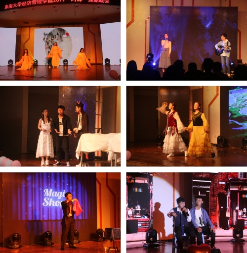 晚会进入下半场,节目变得更加丰富精彩。富有现代气息的木偶舞与韵味悠长的古典舞融于《止溯》,令人印象深刻。《上学那些事儿》恍然间带你回味高三的岁月,《初入东南的日子》又引你走出回忆,回到大学,畅想四年时光。东方与西方的融合,乐音与舞蹈的碰撞,《乱红》让你感受多重视听体验。爵士舞《fire》尽显动感,将晚会气氛带向新的高潮。歌曲串烧《ART&POP》用不同风格的歌曲展现经管人的活力青春。