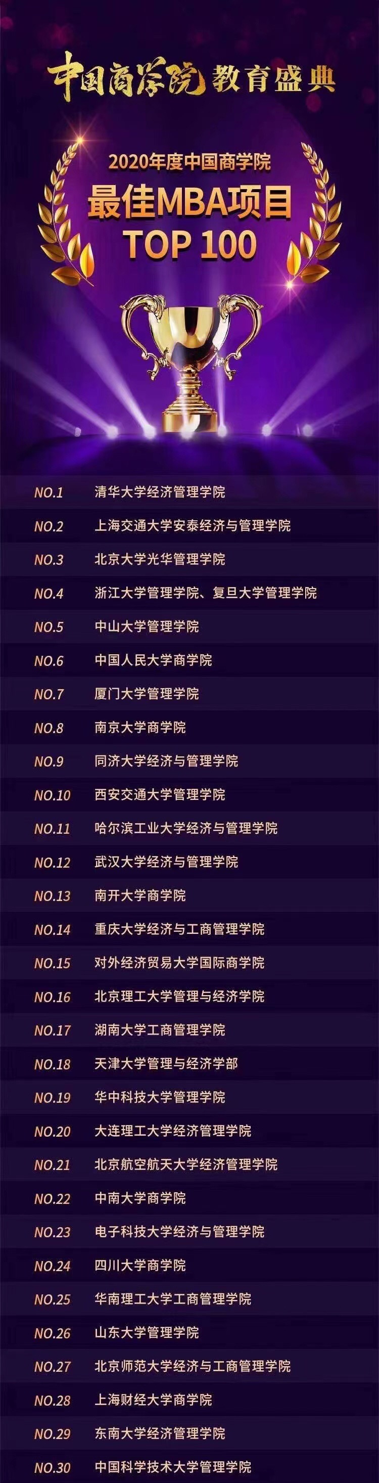 目前,全国共有246所MBA培养院校,新葡的京集团8814vip是第三批(1997年批准)开办MBA项目的高校,前三批MBA培养院校共有55所。新葡的京集团8814vipMBA凭借百年名校的深厚底蕴,依靠商科发展的雄厚实力,依托“培养质量为先、成长发展为重”的培养理念,始终站在MBA优秀培养院校行列。此次评选是对我校MBA办学成果的一次检验,我校MBA项目排名位列全国第29,这是对我校MBA办学成果的一次检验,体现了社会各界对我校MBA项目的一致肯定,这是学校及学院历届领导、全体MBA师生共同努力的结果。这次评选,让我们看到了可喜成绩的同时,更明确了与兄弟院校的差距,可以说,既有动力,更有压力。后续,新葡的京集团8814vipMBA项目将秉承“经世济民、管理制衡”的价值观,遵循目标导向原则,持续推进改革创新,为进一步提高MBA培养质量而继续努力。