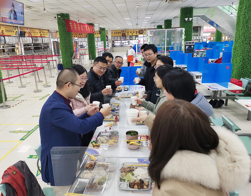 何熠老师一行来到橘园食堂,深切了解大家的需求,与留校学生共聚一堂,一起在校吃年夜饭,让大家在校也有在家的感觉,表达了学院对大家的关心和期望。何书记表示:希望大家一是要感谢伟大的祖国,大家赶上了一个伟大的时代,注定与实现中国梦的伟大征程同行,我们要忠于祖国,忠于人民;二是要感谢学校的栽培,铭记“止于至善”的校训,为早日成为领军人才继续奋斗;三是要感谢学院和恩师的培育,大家的每一份进步都离不开导师的悉心指导、谆谆教诲和严格要求。