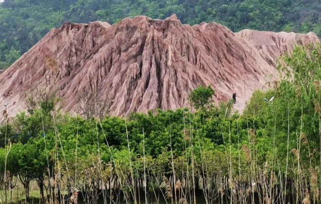 接着大家前去参观属于佘村的“雅丹地貌”。古老的废弃砂矿,经过多年的雨水冲刷,形成了千奇百怪的沟壑,高低错落、千奇百怪的挺立着,构成类似雅丹地貌的地形特征。道道沟壑相连,片片山脉相接,大自然的鬼斧神工在江宁这座古村里体现得淋漓尽致。令人觉得壮观神奇,让人感受大自然的魅力,使人不禁赞赏“绿水青山就是金山银山”的发展理念。