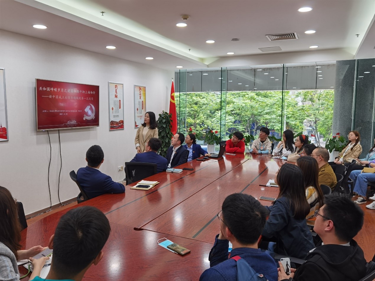 在建党100周年之际,两个支部积极响应扎实开展党史学习教育的号召,由本科生145党支部书记李彤彤带领大家学习了主题为《共和国峥嵘岁月之建国初期平抑上海物价》的党课。