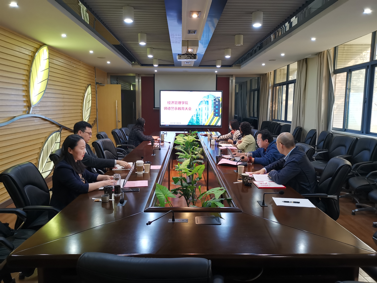 新时代对广大教师落实立德树人的根本任务提出了更高要求,为贯彻落实《教育部关于在教育系统开展师德专题教育的通知》和中央巡视整改要求,近日,新葡的京集团8814vip召开全院师德警示教育大会。本次大会采取线上线下结合的方式,学院全体党政领导班子、党委委员在九龙湖校区经管楼B201参会,其他老师线上参会。