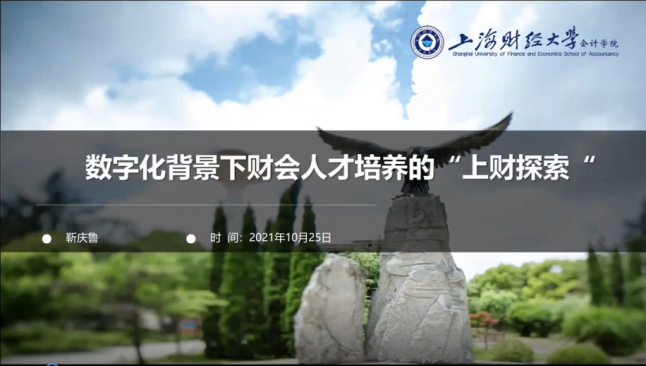 靳庆鲁教授作报告:数字化背景下财会人才培养的上财方案、胡国柳教授作精彩点评。