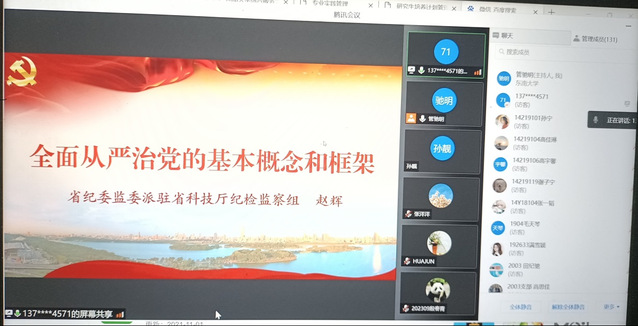 赵处长的党课深入浅出,不仅让师生们进一步深入地、全方位地了解了全面从严治党的提出背景、基本概念、逻辑框架和治理理念,而且其中涉及的诸多案例和数据也发人深省,起到了很好的警示教育作用,切实提高了师生对全面从严治党问题的思想认识,坚定了营造风清气正的教学氛围的信念。