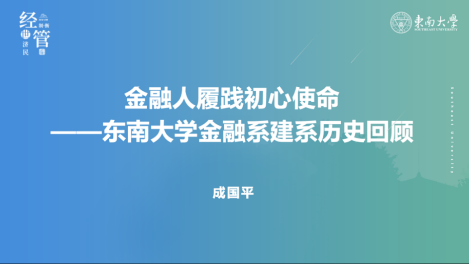 首先,成国平老师向我们介绍了金融系创系的历史渊源以及初心使命。金融系前身是工业经济教研组,主要举办工业经济二学位班,为第一学位非经济学的同学提供了学习经济学知识的宝贵机会,致力于培养既懂技术、又懂经济、法律、会计的复合型人才,服务国家经济社会发展。九十年代初期,为了更好地适应国家改革开放和经济转型发展需要,教研组也一直在思考如何转型,寻找新的发展方向和办学方向。