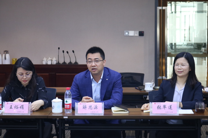 解思源代表中信证券江苏分公司致欢迎辞。他指出,2022年是中信证券江苏分公司正处于深耕区域发展、全力落实“十四五”规划的关键之年,扩展人才队伍是各项工作有力推进的重要基础。双方加强校企合作、构建长期伙伴关系,对于推动实践性金融人才的联合培养具有重要意义。随后,中信证券江苏分公司副总经理、各部门负责人就分管领域分别展开介绍。围绕各部门业务特征、基于供需对接的要求,校企双方对就业育人项目的未来期许开展进行了深入交流。