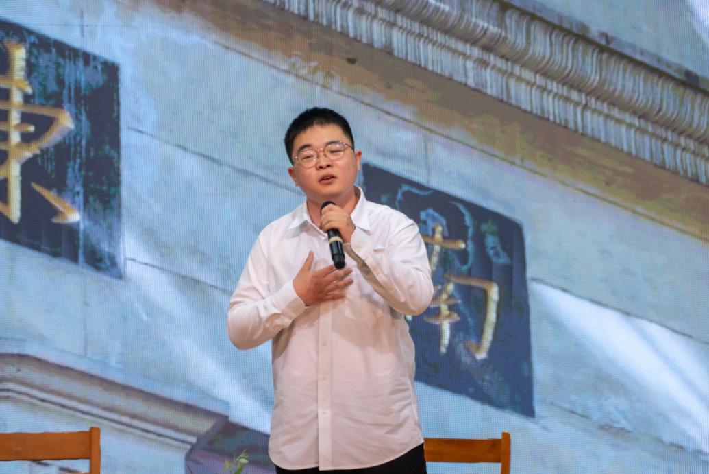 访谈间隙,晁岱健校友倾情献唱了由其谱曲的《乡愁》选段,揭秘了创作背后的故事。乡愁无崖,文化有根。母校给莘莘学子,留下了永远割舍不断的文化烙印。