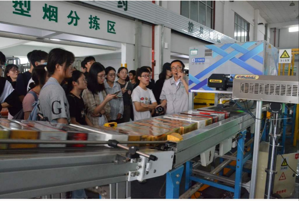 其后,在工作人员的带领下,师生们走进物流中心的仓库,参观了具体作业现场。从烟草入库消杀、分配货位、件烟存储,到刀片开箱、烟仓分拣、条烟打包,再到异型烟的半自动分拣线,物流中心相关领导详细介绍了各部分的作业流程、现状痛点以及创新改进。在陈思远经理的引导下,同学们对仓库实际操作和管理方式产生了深层次的思考。
