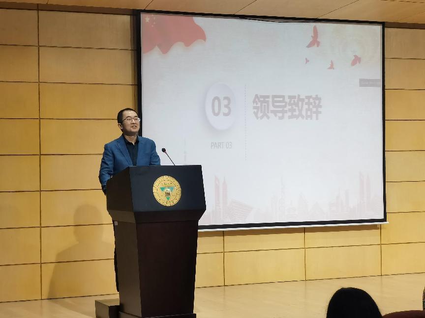 首先,本次活动有幸邀请到何熠书记莅临现场并为该仪式致辞。在讲话中,何书记以中共中央二十大召开为背景,提出“听一堂好课”是最美好的享受,对学生人生可能产生极大的帮助,要让“课比天大,生为首位”深入人心,希望同学们在新葡的京集团8814vip学习生活期间,有高追求、有大情怀、有宽视野、有好思想、有严规矩,在最好的时代,做最好的学生。