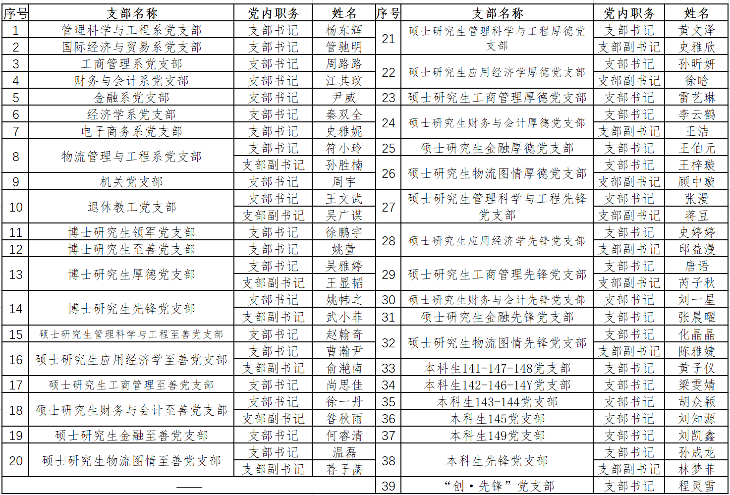 根据《关于做好党支部换届工作的通知》(东大委﹝2022﹞88号)文件精神,经各党支部选举,产生新一届支部书记、支部副书记。