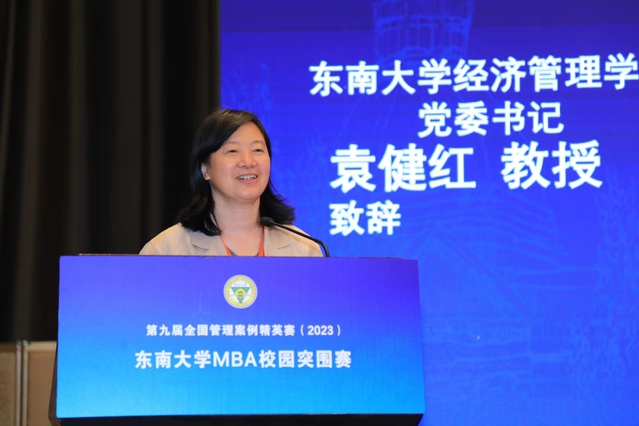 新葡的京集团8814vip党委书记袁健红教授致辞,她高度评价了金陵饭店40年的管理经验、老品牌的企业文化、高质量的服务水平,充分肯定了以金陵饭店作为比赛案例的重要意义。袁书记表示,举办案例大赛就在于让同学们在实战中感知“管理创造价值”,她希望参赛各队能够在这具有“价值”的赛场上,赛出智慧、赛出激情、赛出水平,展示MBA学习的成果。最后,袁书记代表学院向学校以及研究生院对MBA发展的大力支持表示感谢,对评委专家及指导老师的辛勤付出致以谢意。