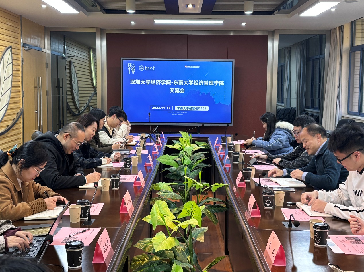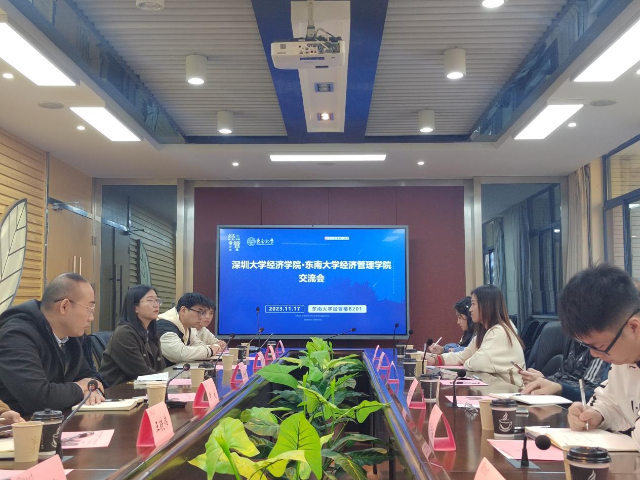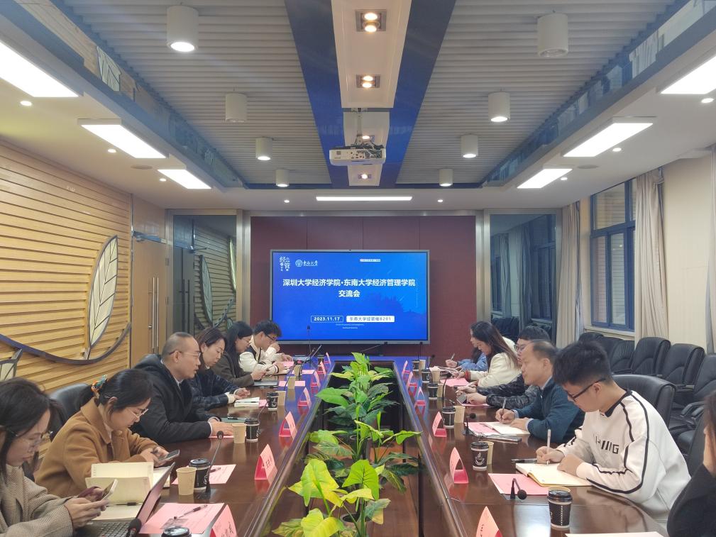 学院党委副书记兼副院长尹威代表学院对深圳大学经济学院一行的来访表示热烈欢迎,并希望双方加强交流合作,积极探寻合作机制,共同推进双方的发展再上新台阶。尹威副书记和张建华副书记从各自学院学生工作特色、创新人才培养、师资队伍、科学研究、国际合作等方面依次介绍双方学院概况。
