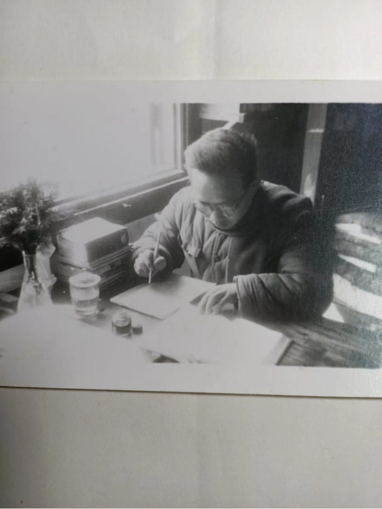 (袁振铎在宿舍(今文昌桥学生宿舍老六舍204室)翻译俄语教材)