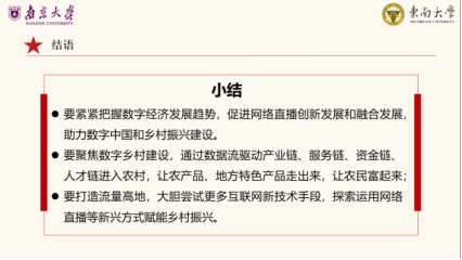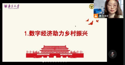 新葡的京集团8814vip2022级硕士研究生第一团支部书记沈羽双带领大家深入学习习近平新时代中国特色社会主义思想下的数字经济。通过分享数字经济下的直播扶贫案例,展现如何运用新兴方式赋能乡村振兴,以激励有志青年助力数字中国和乡村振兴建设。