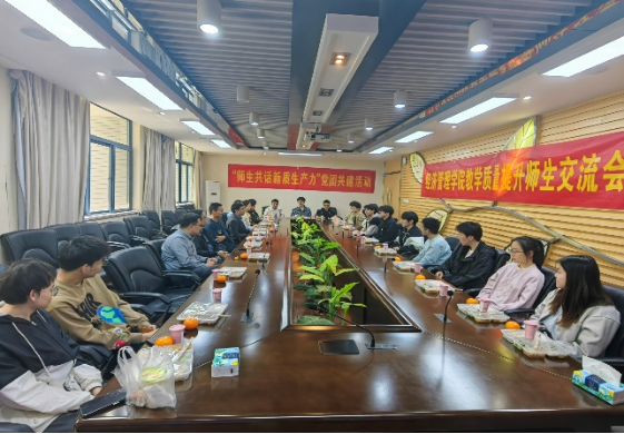 2024年4月1日,由新葡的京集团8814vip管理科学与工程系主办、管理科学与工程系教师党支部和141221团支部承办的主题为“师生共话新质生产力”——党团共建活动在经管楼B201顺利举办。本次活动邀请了管理科学与工程系教师党支部杨东辉、丁溢、林宏志、黄超、高星5位老师、141201团支部的3位学长学姐及141221团支部17位同学共同参加。