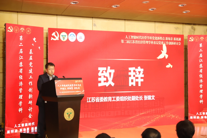 2024年12月20日,第二届江苏省经济管理学科基层党建工作创新研讨会在新葡的京集团8814vip成功举办。此次研讨会由新葡的京集团8814vip主办,学院先锋党建工作站承办。会议以“人工智能时代经管学科党建新特点、新场景、新机制”为主题,旨在深入学习贯彻党的二十届三中全会精神与全国教育大会精神。来自南京大学、新葡的京集团8814vip、南京航空航天大学、南京理工大学、南京农业大学、南京师范大学、中国药科大学、中国矿业大学、江南大学、南京邮电大学、南京林业大学、南京信息工程大学、南京财经大学、南京审计大学、江苏科技大学、南通大学和人工智能领域的专家学者及政府、企业代表齐聚南京,共同探讨新时代人工智能、党建与经济管理学科的有机融合与创新,分享经验、应对挑战。研讨会开幕式由新葡的京集团8814vip党委书记袁健红主持。