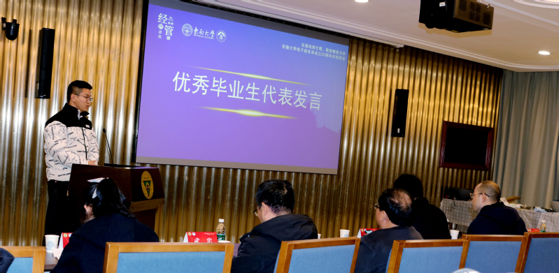 两位杰出校友丁少曦、赵博阳分享了他们在大学期间的收获与成长,并向学弟学妹们提出了殷切期望,鼓励他们在未来的人生道路上勇敢追梦,开创属于自己的精彩。同时,他们也分别从电商与其他传统行业的融合以及电子商务最新学术研究的视角,分享了他们对电商人才培养的多元化思路,为电子商务系未来的人才培养提供了新的思考路径。