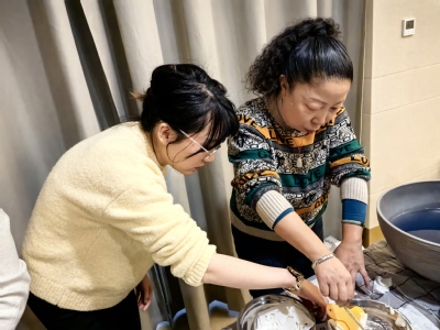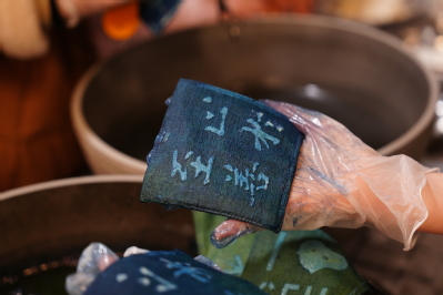 中场休息环节,与会老师、校友交流互动,并体验了非遗漆染和蓝染工艺,制作了电子商务系20周年的书签、冰箱贴和东大“止于至善”的蓝染杯垫。