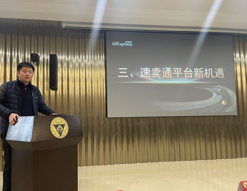 2014届校友王璨,现任AliExpress(速卖通)行业运营专家,结合自身丰富的跨境电商经验,探讨了跨境电商与国内零售电商在业务模式、物流基础、政策环境等方面的差异,并展望了行业未来的新机遇和发展趋势,为在场的师生提供了深刻的行业洞察。