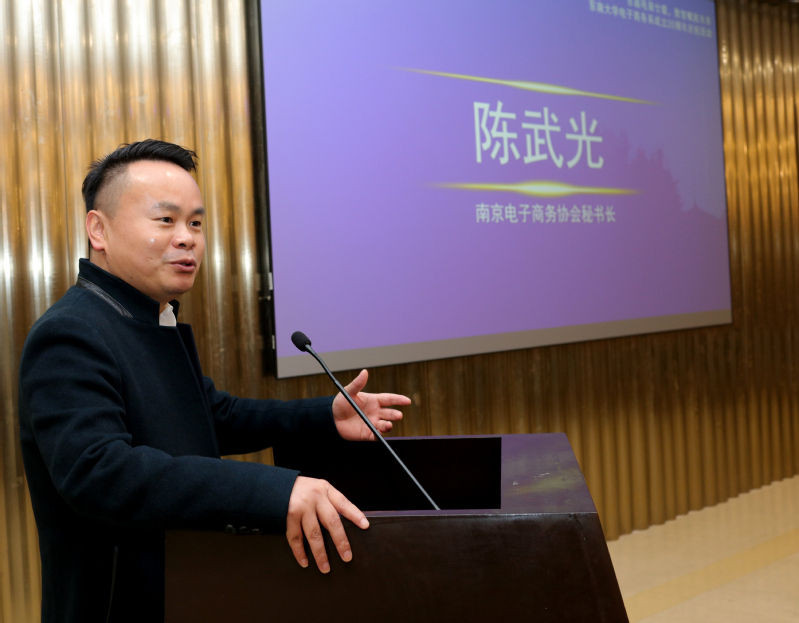 南京市电子商务协会秘书长陈武光在致辞中对新葡的京集团8814vip电子商务系为南京电商行业培养人才所做出的杰出贡献给予了高度评价。他特别提到即时零售电商和直播电商等新兴领域的发展,并对电子商务系积极开展校企合作,培养复合型人才的举措表示期待。