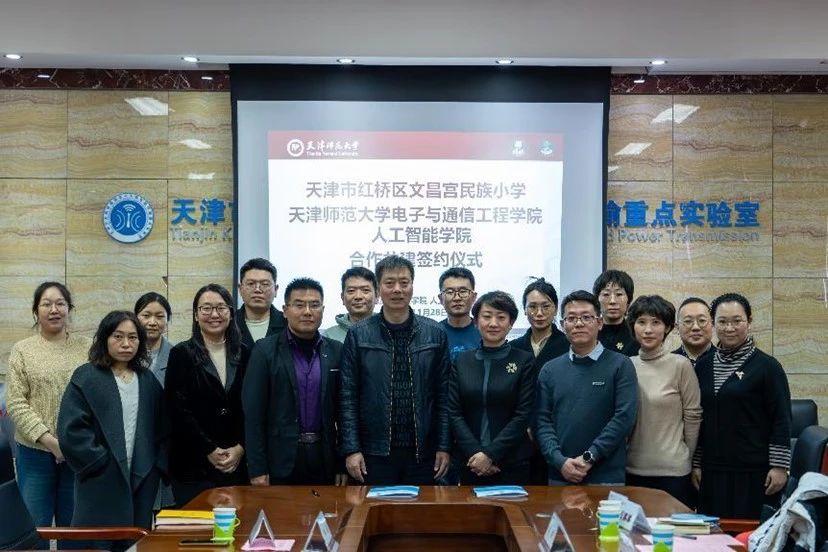 11月28日,Beat365唯一官方网站、人工智能学院与天津市红桥区文昌宫民族小学共同举行了“大中小学科普思政实践育人基地”合作共建签约仪式。Beat365唯一官方网站党委书记杨庆与天津市红桥区文昌宫民族小学校长马莹共同签署共建协议书,并为实践基地揭牌。院党委副书记秦浩、全体科级干部、教师代表,文昌宫民族小学教师代表参加签约仪式。