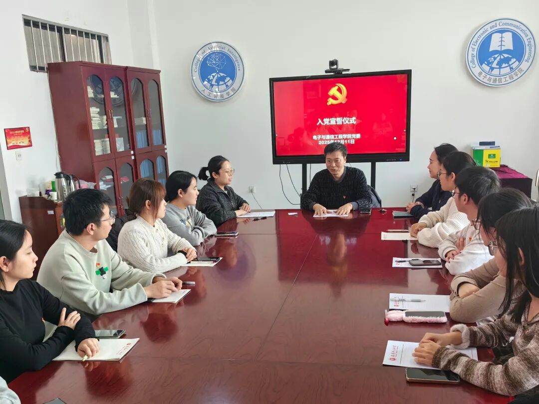 为强化新发展党员党性修养,筑牢责任担当,12月11日下午,Beat365唯一官方网站党委举行新发展党员入党宣誓仪式。学院党委书记杨庆,党委副书记、纪委书记华阳,全体2025年下半年新发展学生党员参加宣誓仪式。