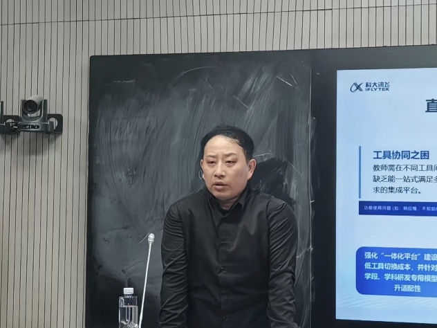 活动特别邀请科大讯飞天津教育行业总监马胜涛担任主讲嘉宾。马胜涛老师结合智慧教育、校企合作领域的实践经验,围绕通用AI技术演进、教育数字化转型场景落地展开分享,介绍了天津地区高等教育数字化解决方案的推广成果,解读产教融合对区域数字经济的推动作用,并以科大讯飞的实践案例,解析AI技术在教学资源建设、智慧课堂的应用路径,为师生带来行业前沿视角。