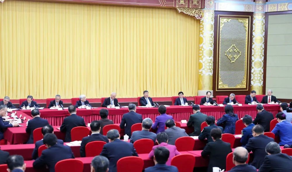 在听取大家发言后,习近平发表重要讲话。他表示,很高兴同大家一起讨论,听取意见建议。他代表中共中央,向在座各位委员,并向广大民盟、民进成员和教育界人士,向广大政协委员,致以诚挚问候。