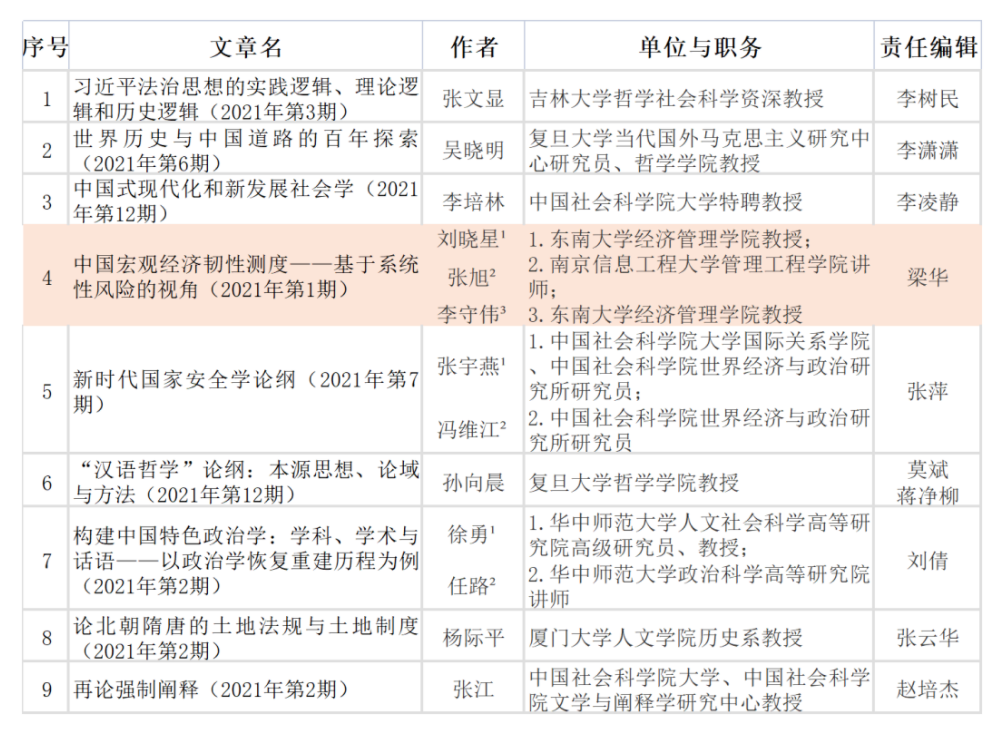 The purpose of selecting the annual good articles of " Social Sciences in China " is to better launch high-quality masterpieces and promote theoretical and academic innovation. Here are the selection criteria--a high degree of unity of political, ideological, and academic; original ideas, theories and viewpoints; cutting-edge issues and methods; heavy academic analysis. After real name voting by readers, voting by peer expert, editorial elementary recommendation and final review by the expert review committee, 9 of the 121 articles published by " Social Sciences in China " in year 2021 were selected as Good Articles in year 2021.