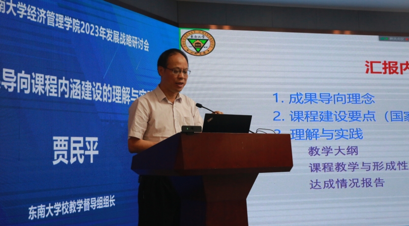 Jia Minping, the head of the Teaching Supervision Group at Southeast University, gave a report